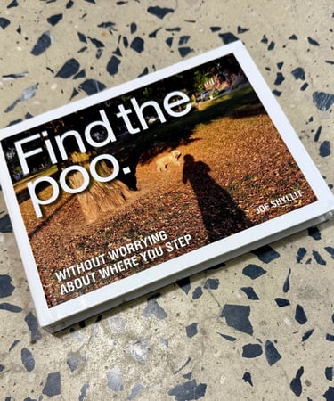 Find the Poo by Joe Shyllit is a humorous photo puzzle book that turns the everyday challenge of dog ownership into a playful game. Inspired by his cockapoo Farfel, Joe Shyllit captures ordinary outdoor scenes—leaf piles, grass, stones—where a hidden dog poo lurks. Readers are invited to spot it, much like a canine-themed Where’s Waldo. With witty visuals and relatable humor, the book is both a lighthearted puzzle and a cheeky celebration of life with pets.