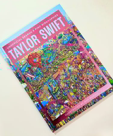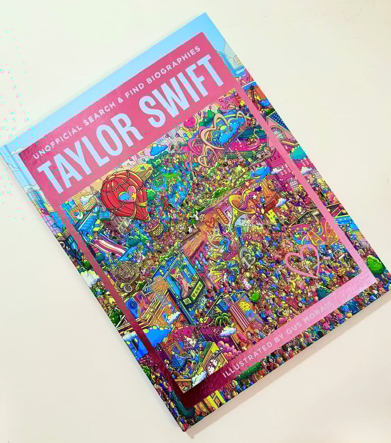 This large (I mean large 9.7" x 11.85"), beautifully illustrated book by award winning illustrator Gus Maoris is like a Where’s Waldo but Taylor Swift version. Each oversized page spotlights a different album era like Reputation, 1989, and Lover, filled with vibrant scenes and clever details. You’re not just searching for Taylor; you’re also hunting for hidden Easter eggs, song references, and fun extras. Taylor is represented in different outfits for each page. Can you find all the number thirteens or spot her cats Meredith, Olivia, and Benjamin Button! There’s even a massive foldout page for that shows a huge concert venue. A perfect delightfully, interactive gift for any Swiftie: kids, teens, or adults.